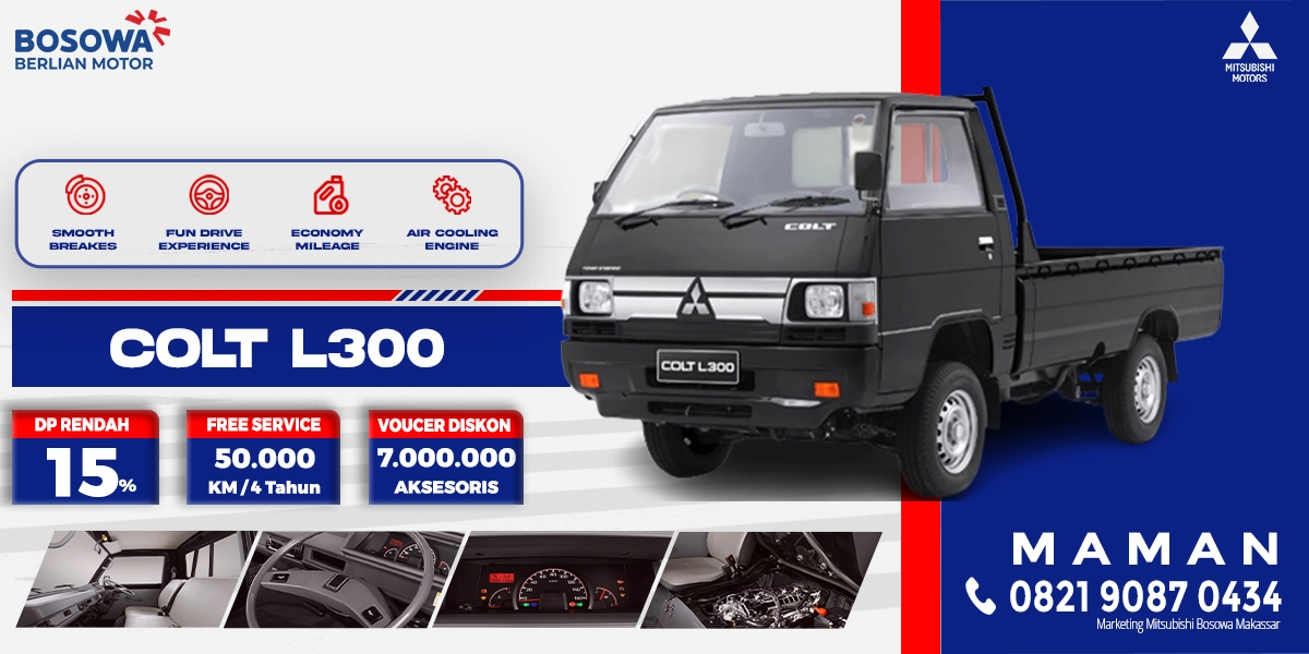 kendaraan niaga ringan andalan yang telah dikenal karena keandalannya. Dengan mesin diesel 2.268cc yang tangguh dan efisien, L300 menawarkan daya angkut besar hingga 1,5 ton. Desainnya yang praktis dan kokoh membuatnya cocok untuk berbagai kebutuhan bisnis, mulai dari pengangkutan barang hingga logistik. Kendaraan ini juga memiliki suku cadang yang mudah ditemukan, perawatan yang terjangkau, serta ketahanan tinggi untuk digunakan di berbagai medan. Mitsubishi L300 adalah solusi tepat untuk meningkatkan produktivitas usaha Anda.